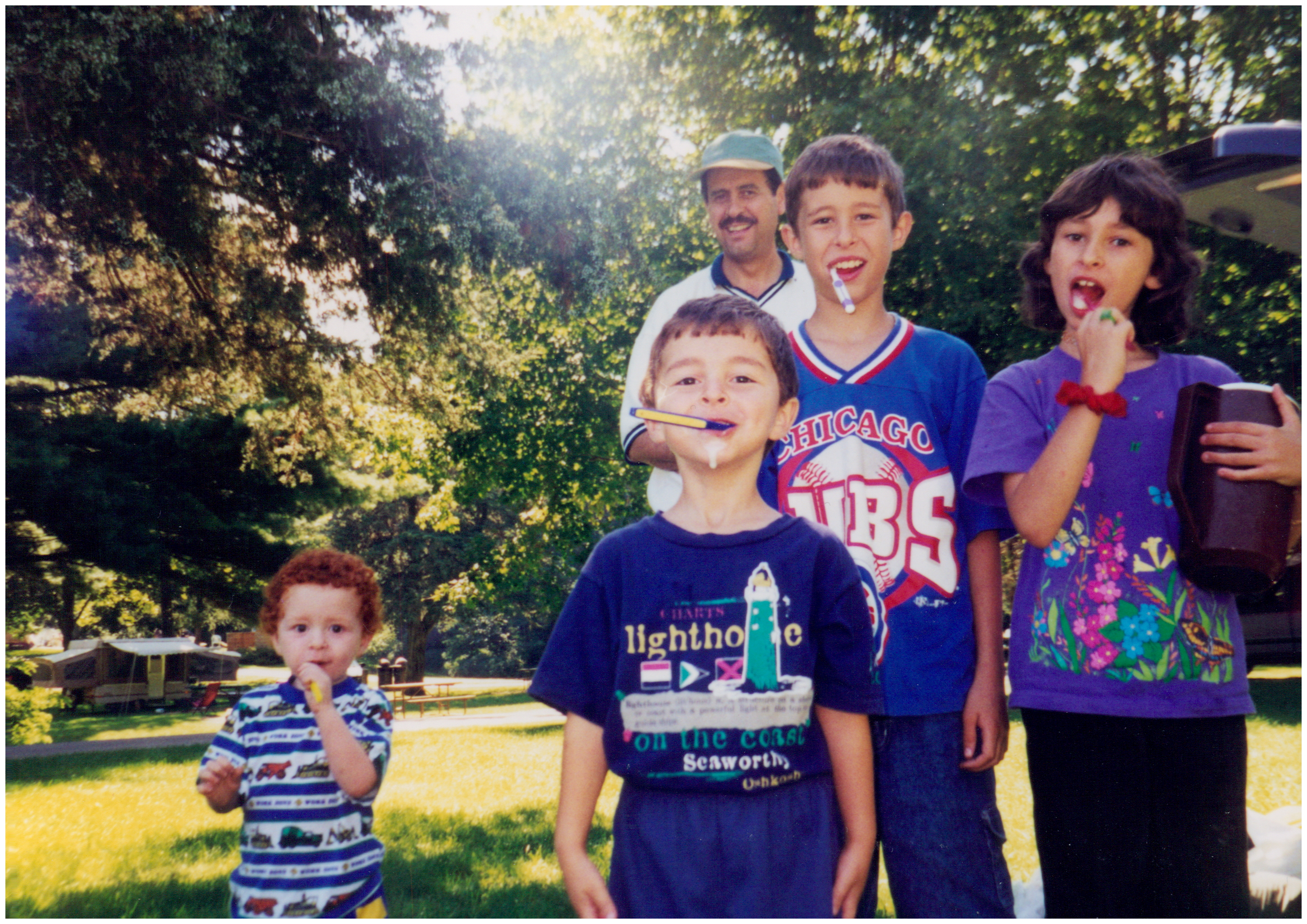 The picture you see is my family celebrating an Eid camping trip after Ramadan in 1998. The red, curly haired, very Caucasian peanut just secured his driver’s license today, and he is a towering 6 foot, 2 inch (183 cm) tall Muslim.
