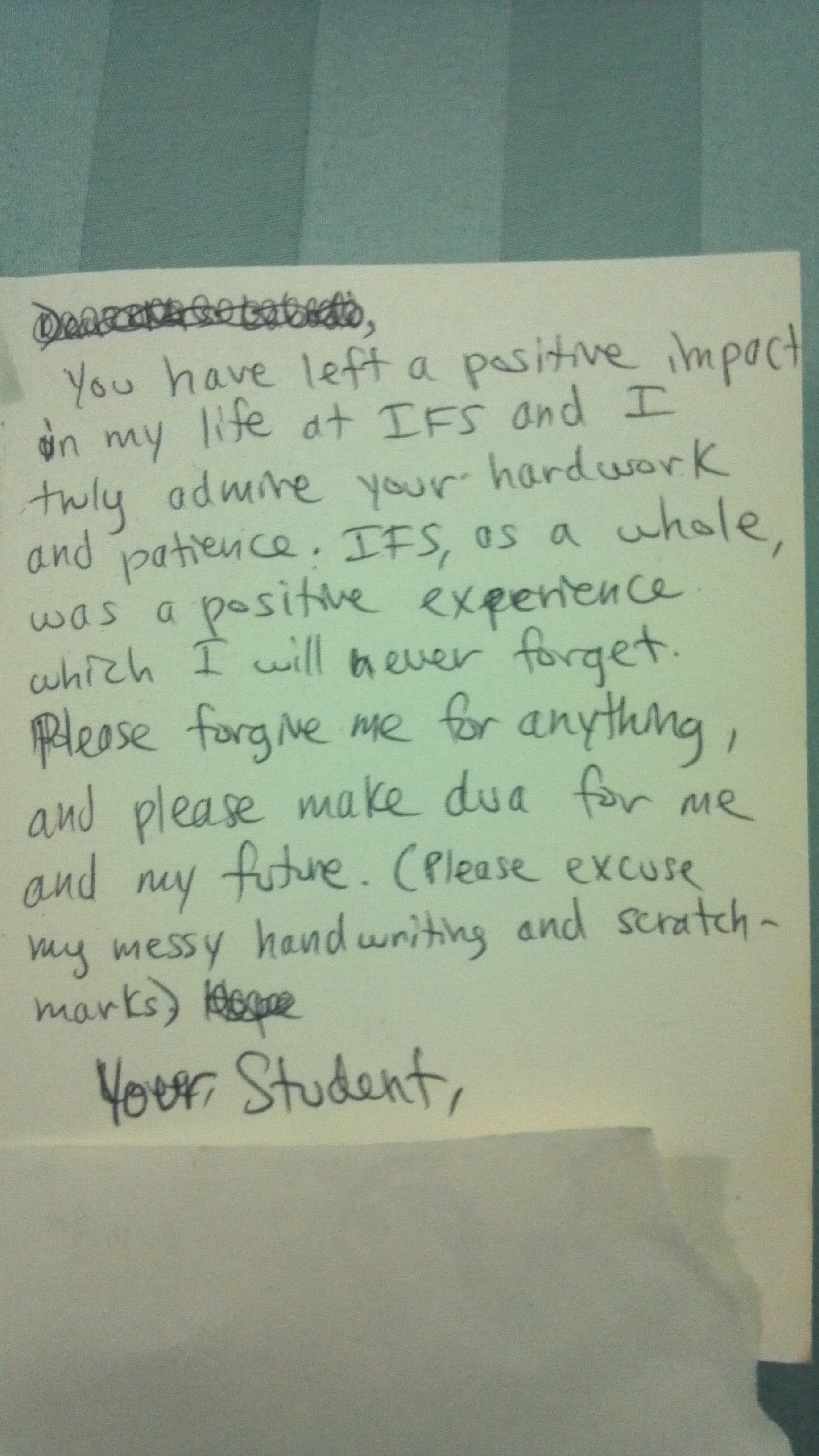 Appreciation notes from my students were gratifying aspects of my career as a teacher. If only I’d kept more of them. I found this one as I was cleaning out a dresser, and I love it when former students—now adults—care to “friend” me on Facebook and when I see them succeed various milestones of life.